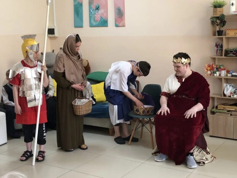 Размещено 25.04.2026 в 1024 × 768 в Учащиеся воскресной школы храма святителя Николая г. Стрежевого во главе с ключарем иереем Александром Хохловым посетили находящихся на излечении в пансионате «Добромир», где поздравили пациентов и сотрудников учреждения с праздников Святой Пасхи