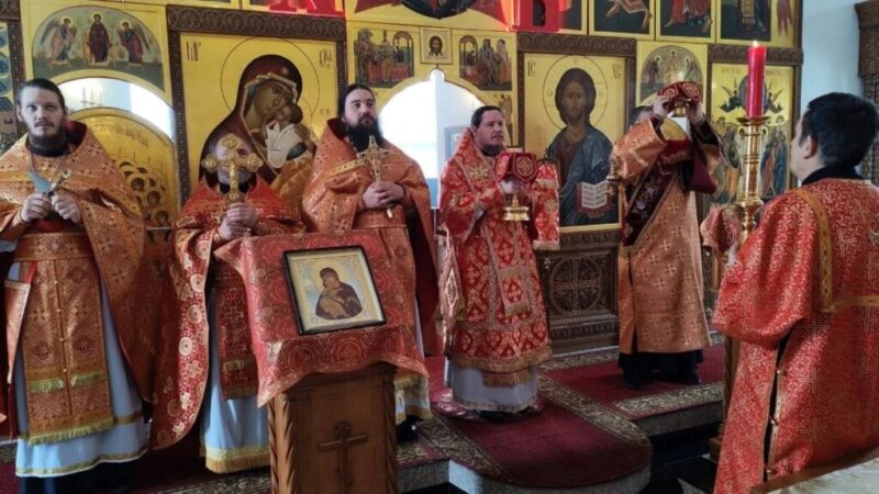 Размещено 25.04.2026 в 1024 × 576 в Во вторник 2-й седмицы по Пасхе, день Радоницы, епископ Колпашевский и Стрежевской Филарет совершил Божественную литургию в Вознесенском кафедральном соборе г. Колпашево