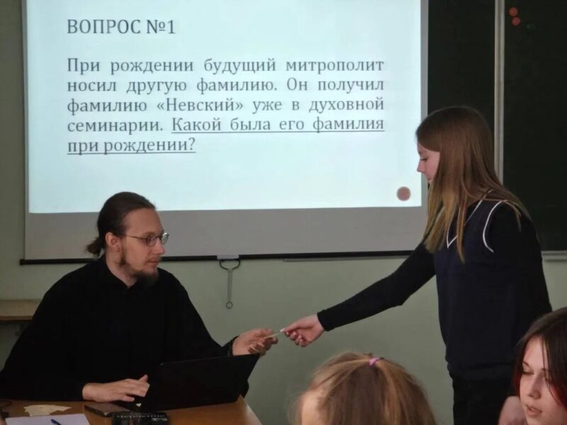 Размещено 25.04.2026 в 1024 × 768 в Клирик Вознесенского кафедрального собора г. Колпашево иеродиакон Макарий (Башкловкин) провел для учащихся 9-11-х классов Кедровый интеллектуальную игру «Что? Где? Когда?»