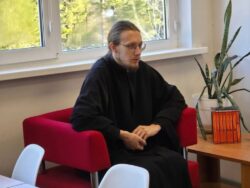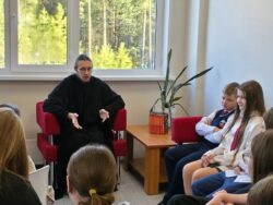 В начале дня отец Макарий дал интервью юным журналистам в школьной библиотеке, ответив на вопросы о своём пребывании в городе и дальнейших планах.