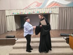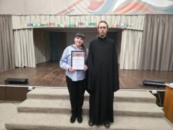 В завершение дня в актовом зале школы были подведены итоги 5-ти дневной рабочей миссионерской поездки иеродиакона Макария, вручены грамоты призерам интеллектуальной игры «Что? Где? Когда?» и благодарственные письма директорам, помощникам и педагогам школ.
